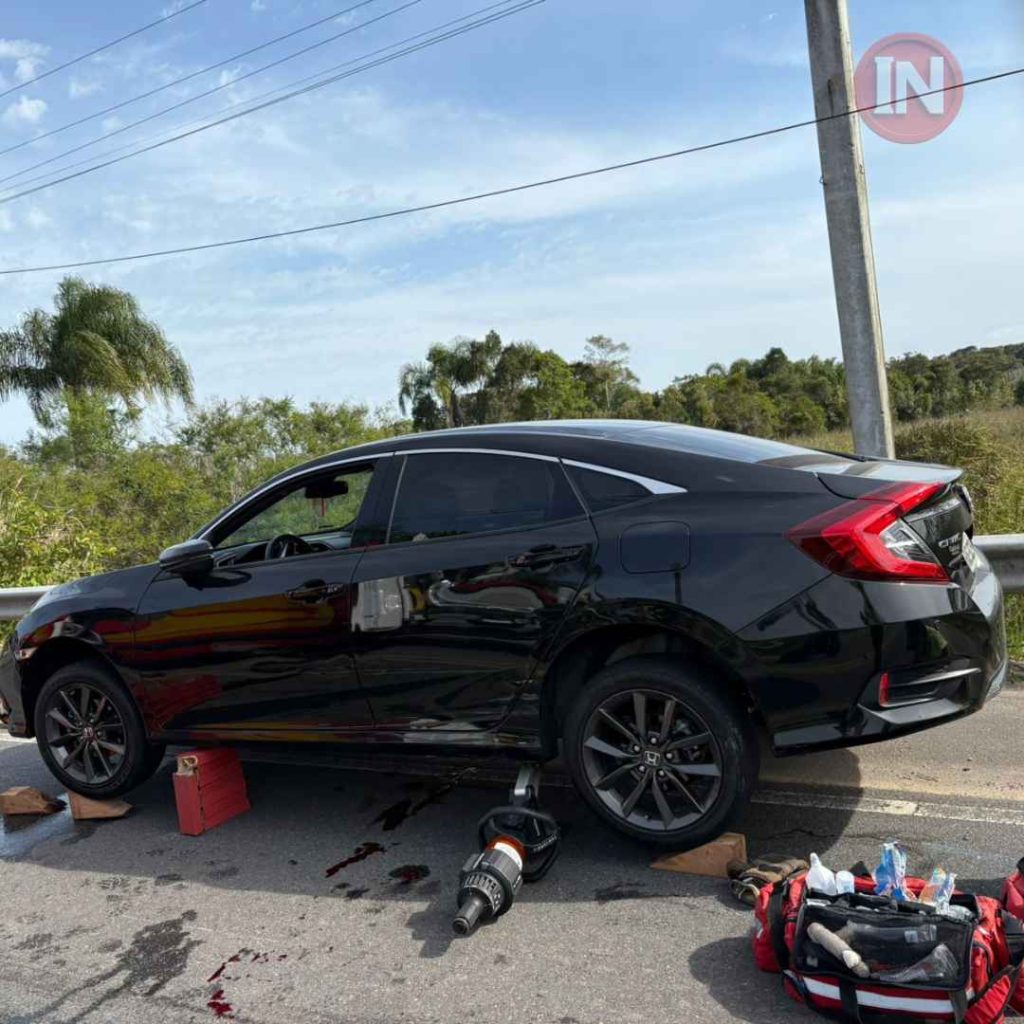 Acidente grave entre carro e motocicleta deixa homem ferido em São Francisco do Sul